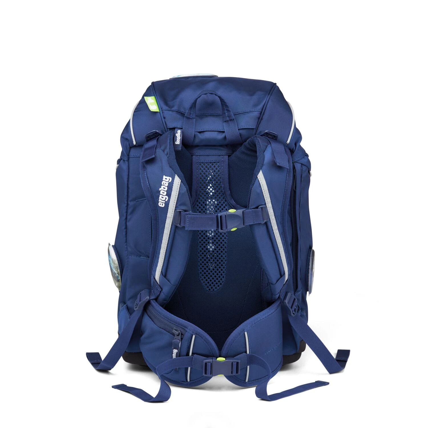 Der Pack von Ergobag überzeugt mit seinem ergonomischen Auftreten. Die wirbelsäulenförmige Aluschiene sorgt für die Stabilität und gibt dem Ranzen seine ergonomische Form. Fixiert wird der Grundschulranzen mit einem breiten Schultertragegurt sowie den beiden Gurten am Becken und an der Brust. Diese sorgen gleichzeitig dafür, dass das Gewicht – von 1,1 kg – sich gleichmäßig auf dem Rücken Ihres Kindes verteilen kann. Ebenfalls sorgt hierfür das integrierte Tunnelzug-System.