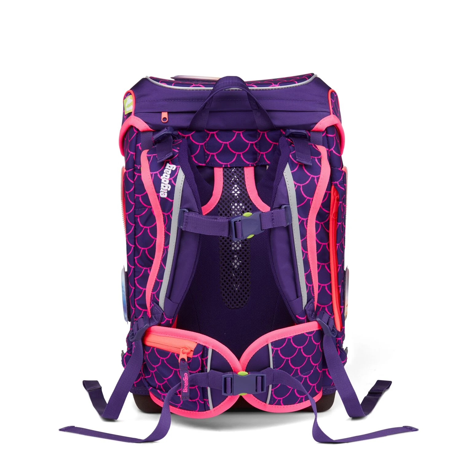 Für einen angenehmen Tragekomfort wurde ein atmungsaktives Rückenpolster verbaut, welches sich optimal an den Körperbau des Kindes anpasst. Durch das höhenverstellbare Your-Size-System, kann jedes Modell an die Größe Ihres Kindes angepasst werden (1 m 1,50 m). Der Rucksack verfügt über integrierte Seitentaschen, an der rechten und linken Außenseite. Ebenfalls sind hier noch Reißverschlüsse für Zip-Sets angebracht. Ausgestattet ist der Pack mit einem extra Regencape-Fach und einer Tasche im Deckel des Ranzens.