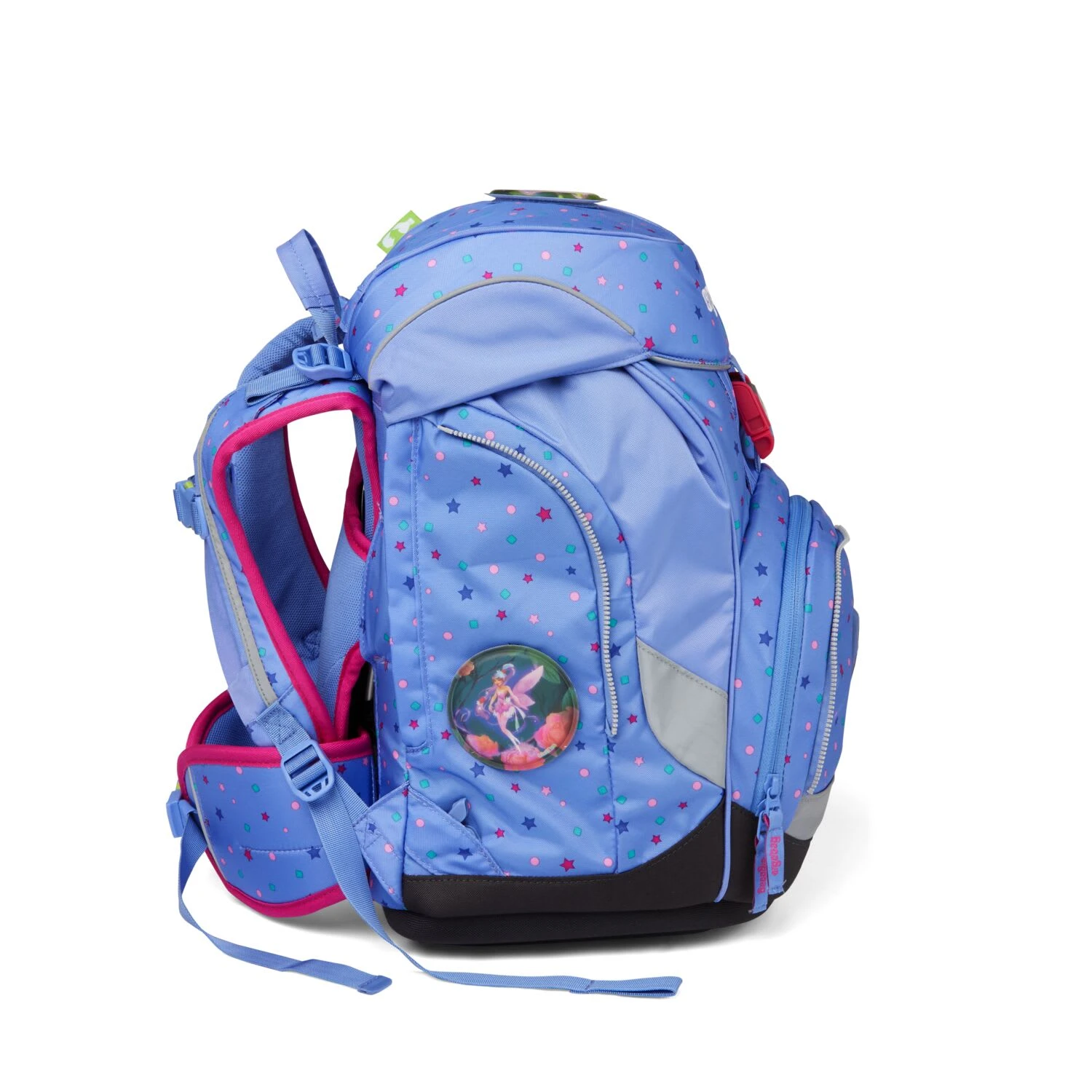 Der Pack von Ergobag überzeugt mit seinem ergonomischen Auftreten. Die wirbelsäulenförmige Aluschiene sorgt für die Stabilität und gibt dem Ranzen seine ergonomische Form. Fixiert wird der Grundschulranzen mit einem breiten Schultertragegurt sowie den beiden Gurten am Becken und an der Brust. Diese sorgen gleichzeitig dafür, dass das Gewicht – von 1,1 kg – sich gleichmäßig auf dem Rücken Ihres Kindes verteilen kann. Ebenfalls sorgt hierfür das integrierte Tunnelzug-System.